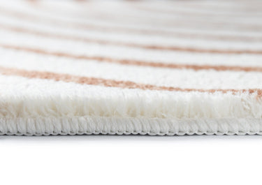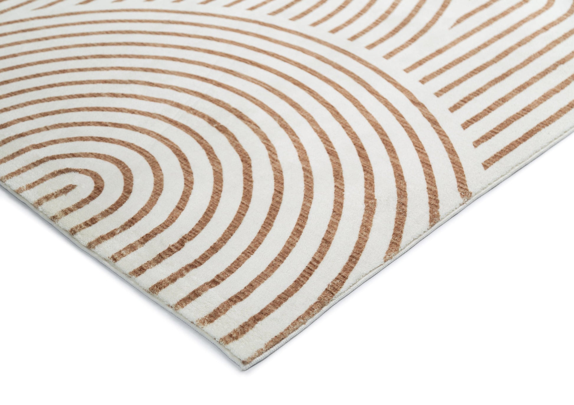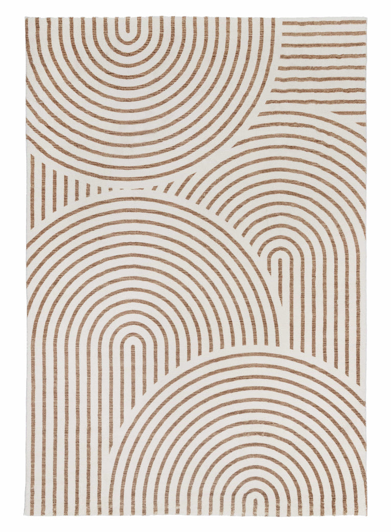Geometric arch curved line pattern in brown on an ivory-based background. A fun unique modern and contemporary rug design to accent any space and decor.